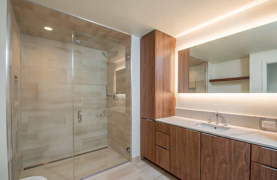 When properly installed, recessed lighting can be used for task lighting. You need to ensure proper spacing, intensity, and positioning to provide illumination without glare or shadowing. Two examples of this are lighting a kitchen island with recessed overhead lighting or a bathroom vanity. Task recessed lighting is an excellent fit for modern design with less clutter and can free up space for other design cues in your room.