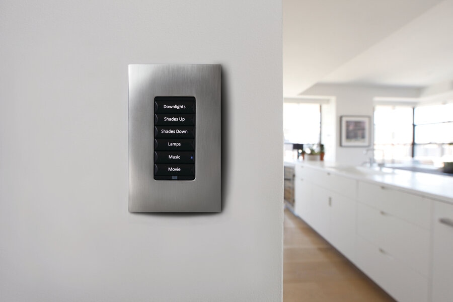 Many people like to use real buttons versus a touchscreen for control. The tactile feel is satisfying, and real buttons are more easily accessible without looking. Control4 wall-mounted keypads are perfect for those things which are best to control with buttons, like lighting. One keypad can manage several lighting loads or create a complete layered lighting scene throughout your house. Beyond lighting, one button push on a keypad can launch a scene where the temperature is set, your motorized shades raise or lower, your lights are dimmed or brightened, and you can even play music or turn on the TV. These buttons might be labeled – custom engraved and backlit – for commonly used scenes like watching TV, entertaining, morning, and more.
