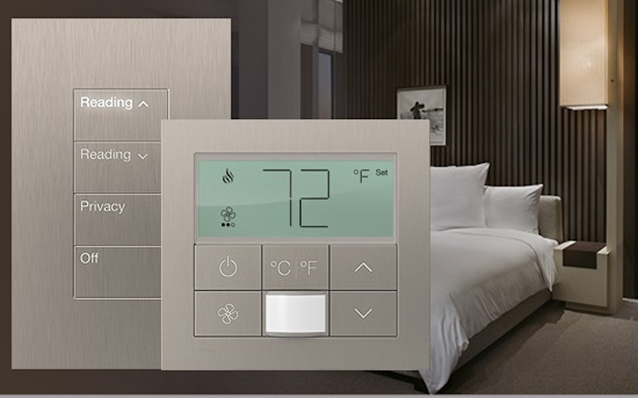 Lutron extends Palladiom style to smart thermostats, too. You can have matching thermostats with the same elegant buttons, engraving, and backlighting. Or, if you desire more centralized control, Palladiom QS wall stations combine temperature display, control, and programmable buttons that can set a scene with lighting, shading, and temperature control.