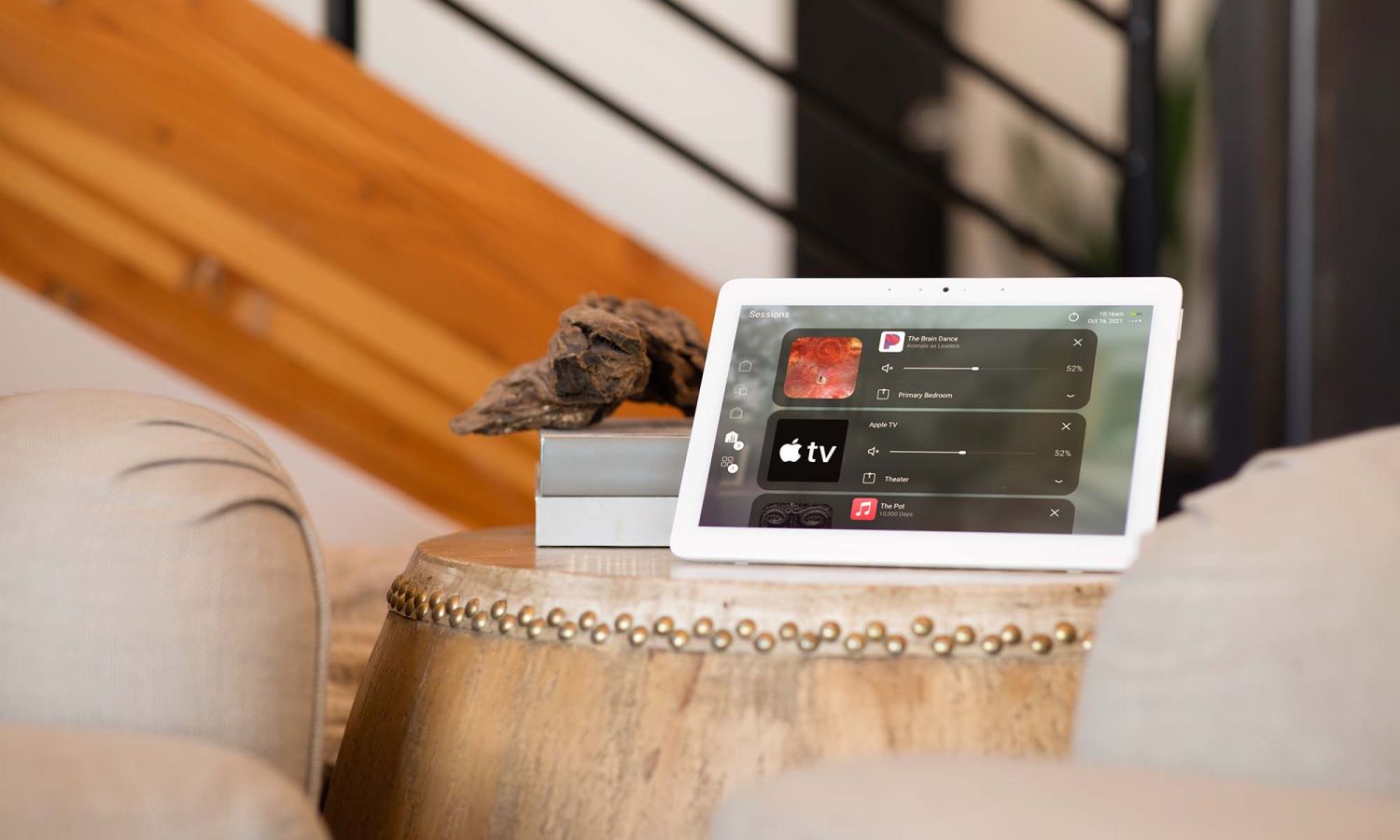 - Smart controls manage lighting, audio, and shades from one interface